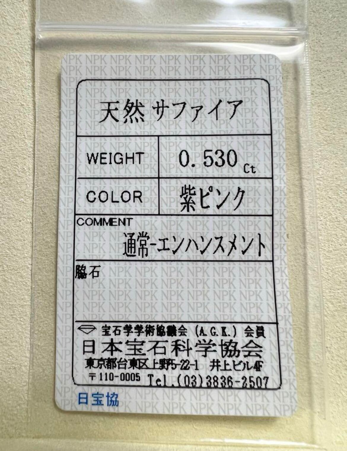 日本宝石科学協会のソーティング証明書無料で付けます。