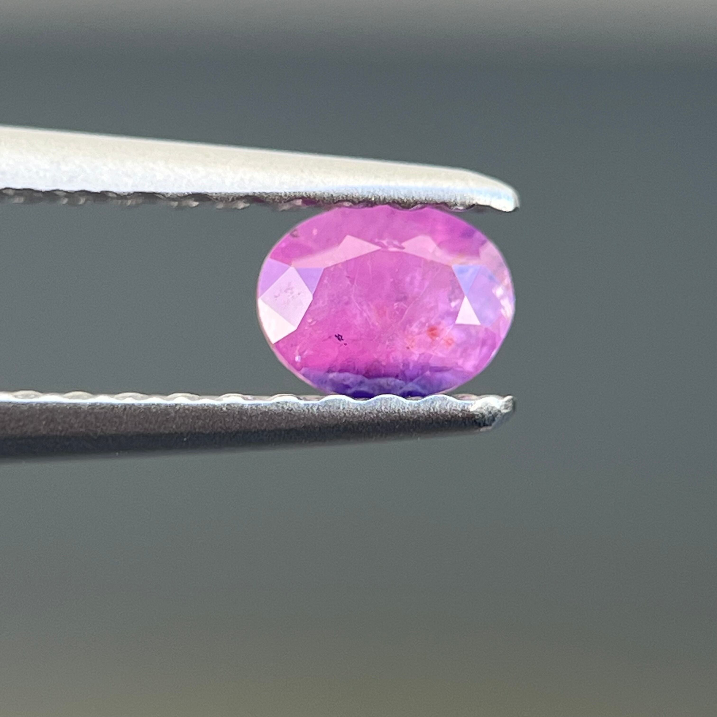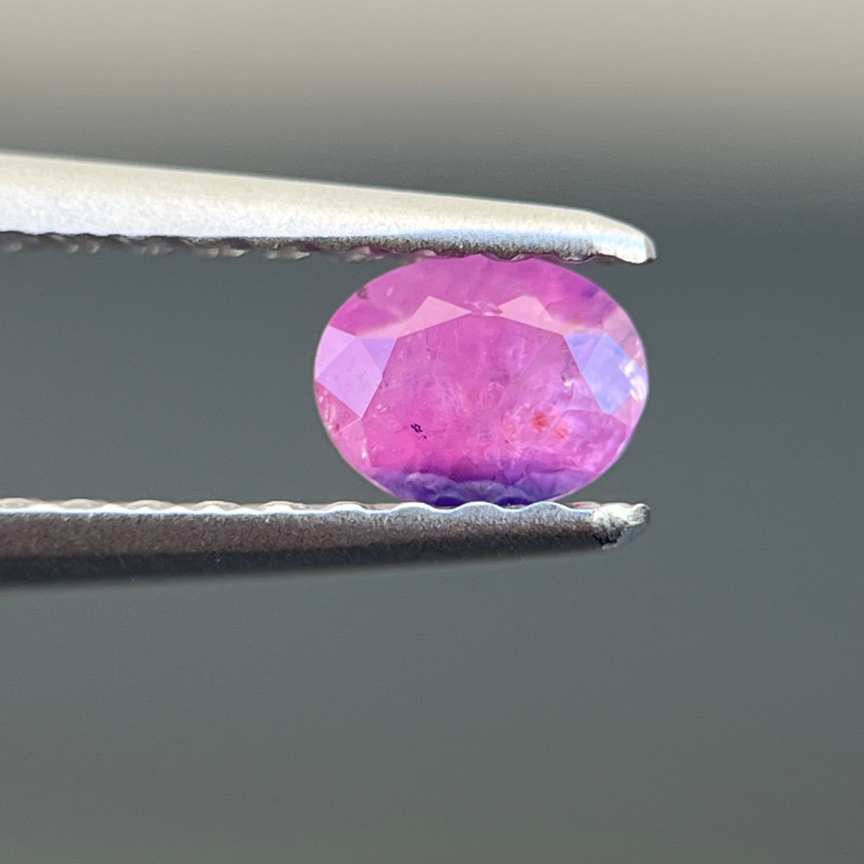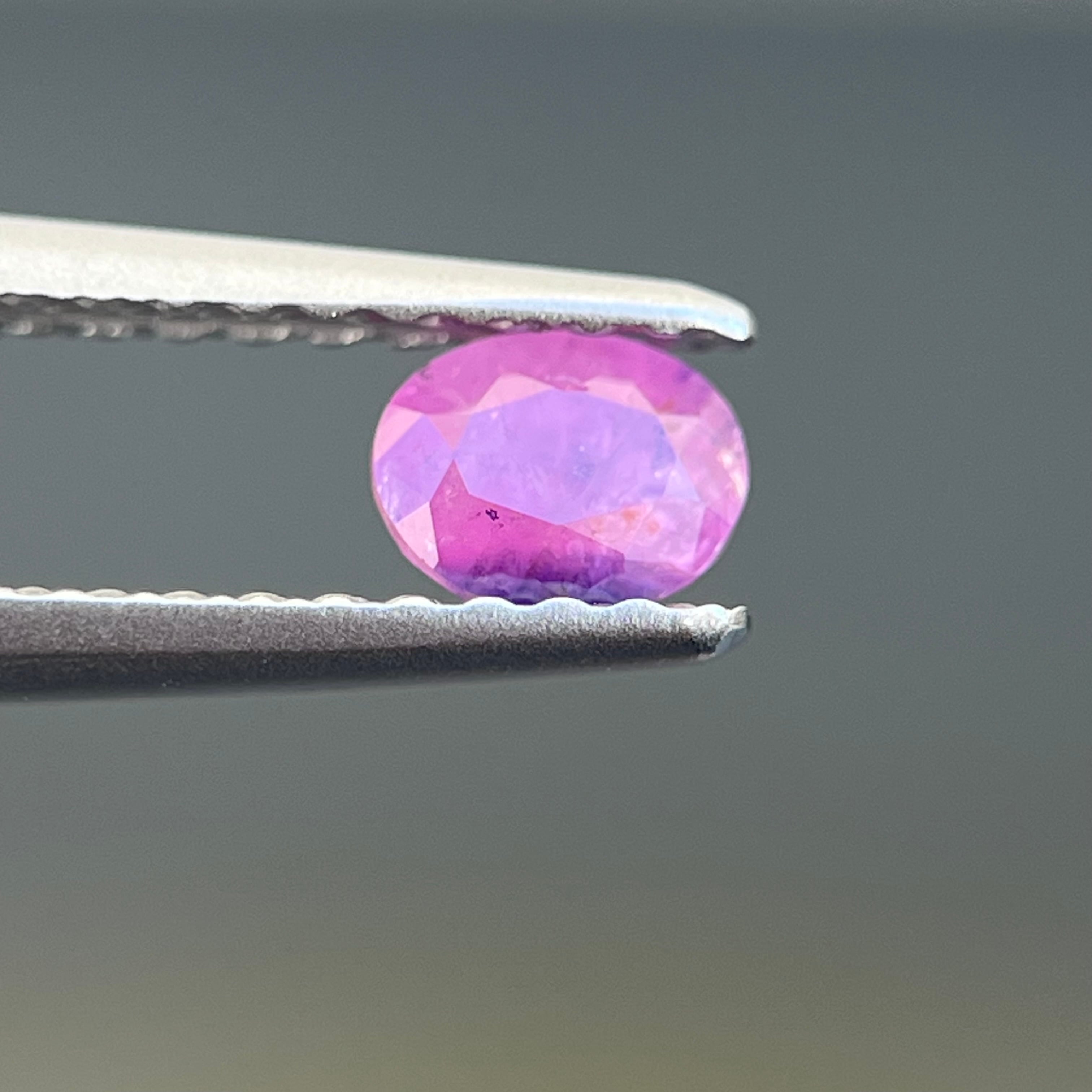 スリランカ産でなかなか手に入らない非加熱天然ルースで、インクルージョンがあり、美しいシルキー青色とピンク色のサファイアルースです。