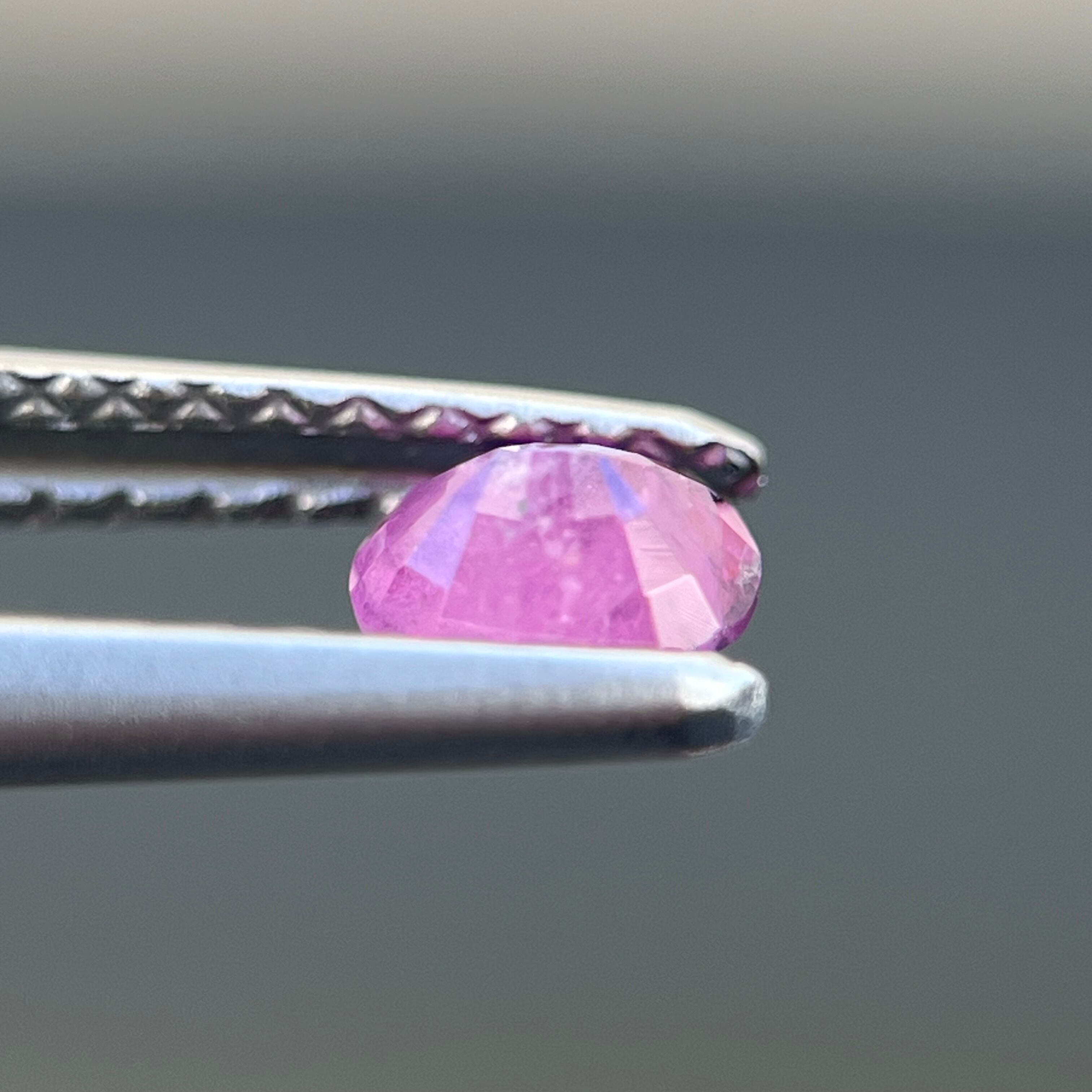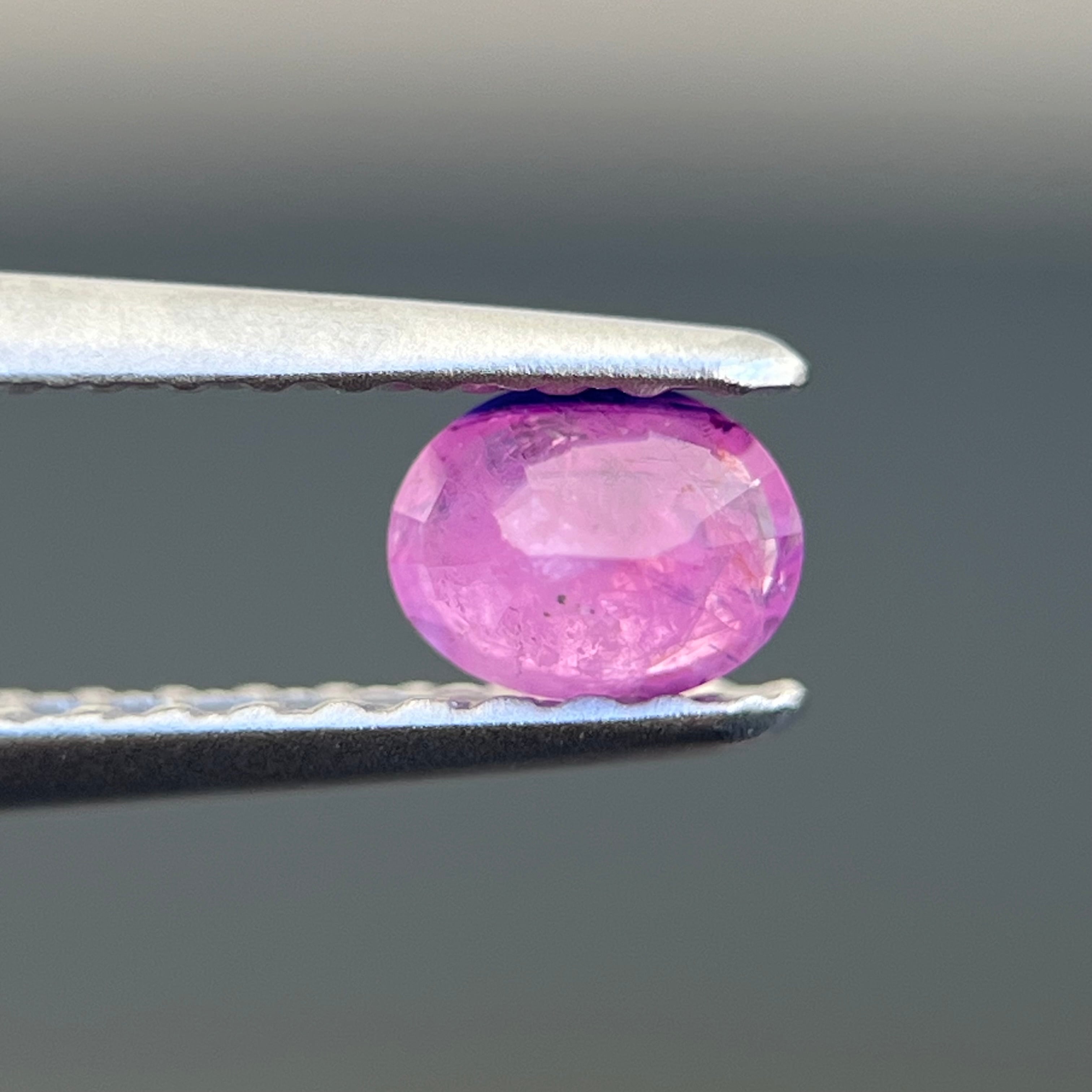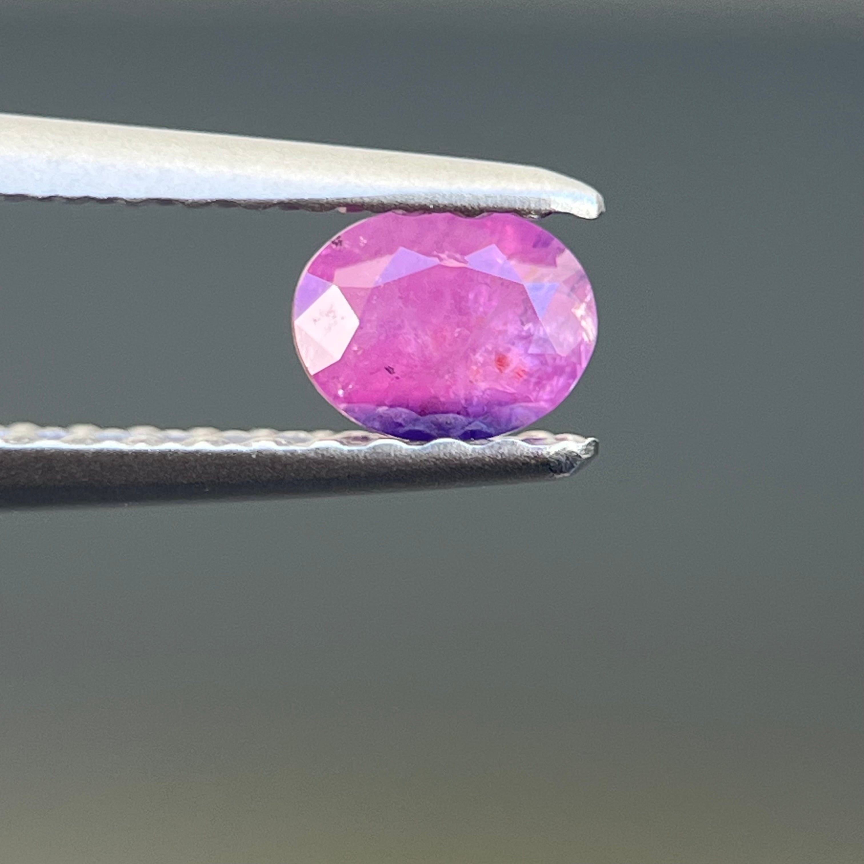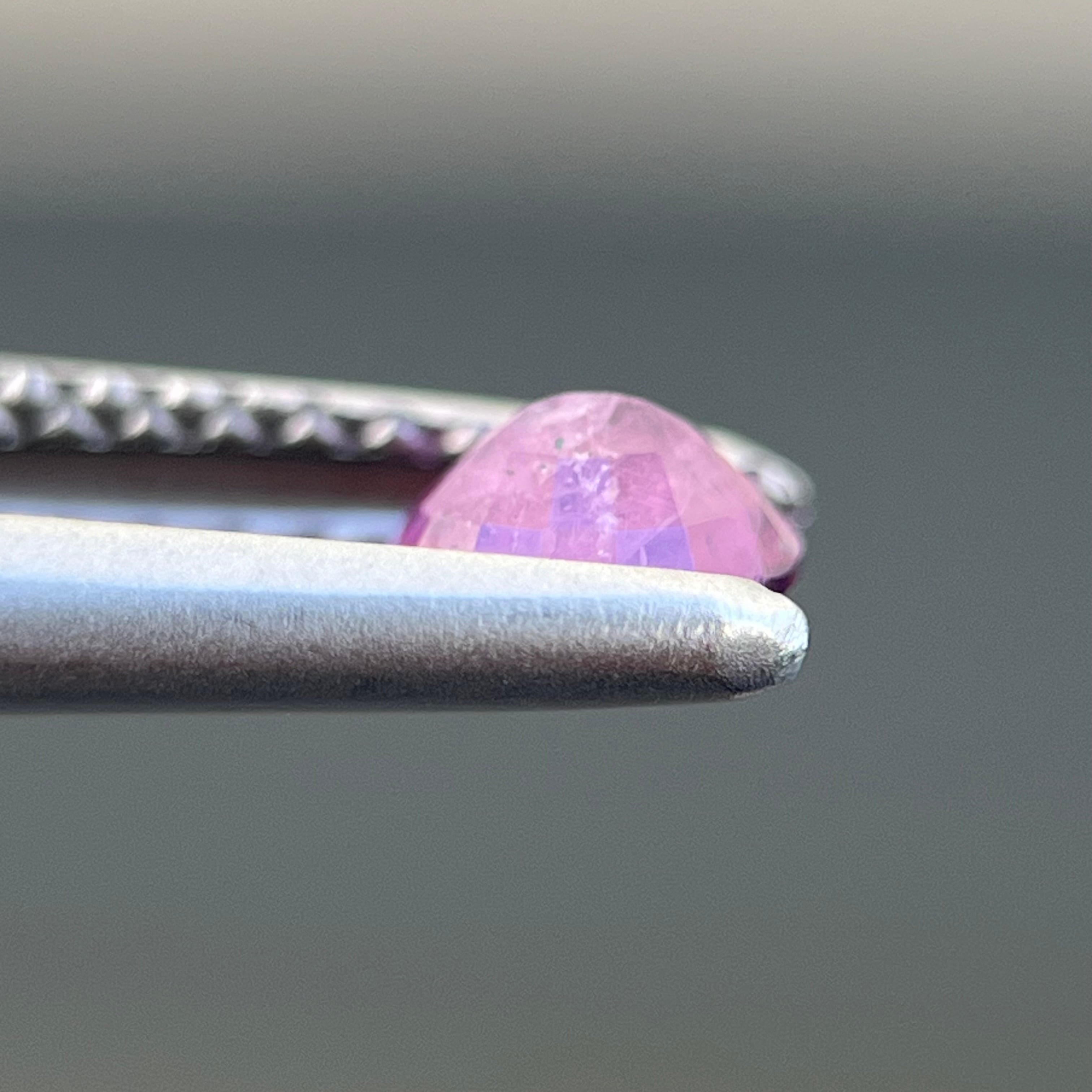 スリランカ産でなかなか手に入らない非加熱天然ルースで、インクルージョンがあり、美しいシルキー青色とピンク色のサファイアルースです。