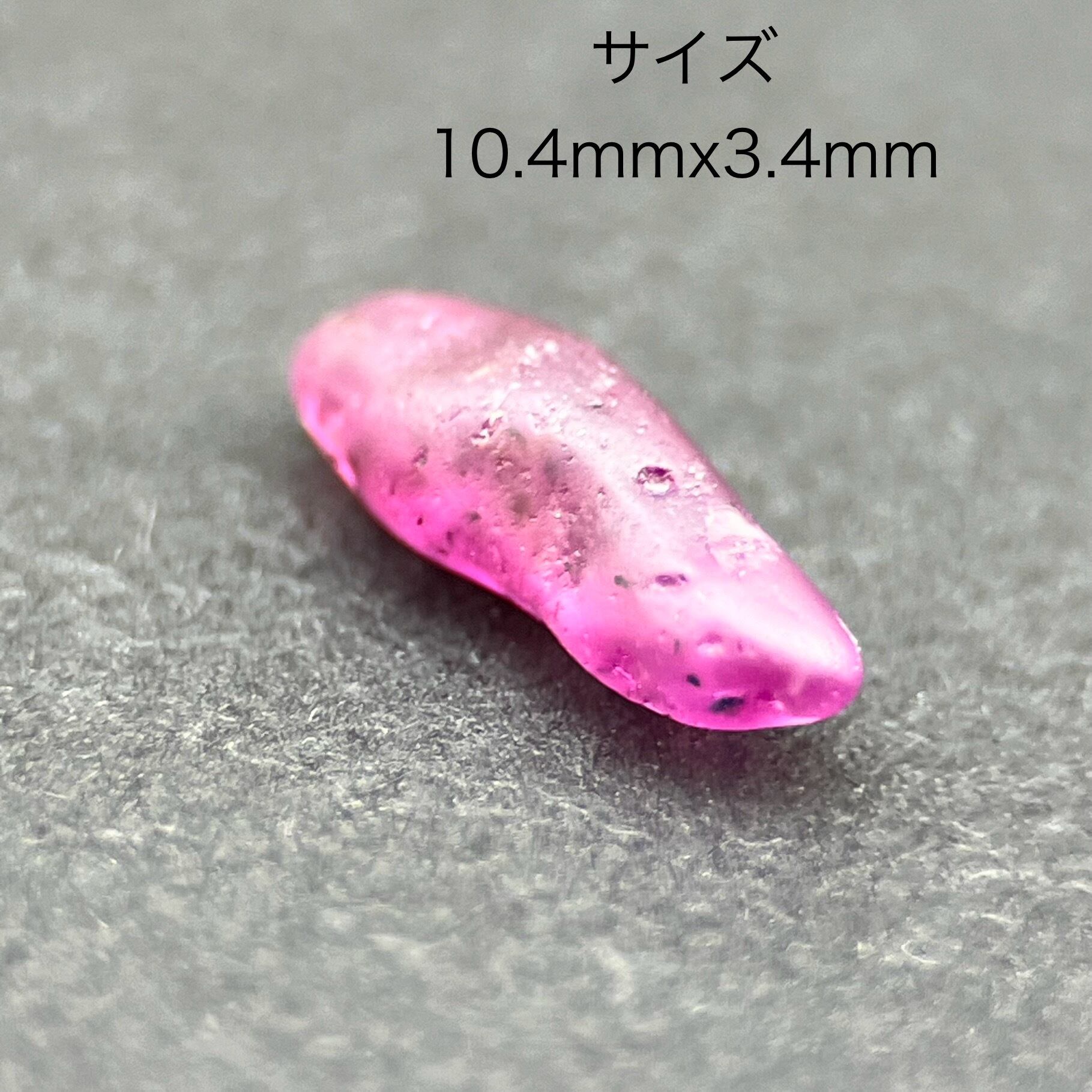 このルース1.34ctのサイズおおよそ長さ10.4mmx3.4mmです。