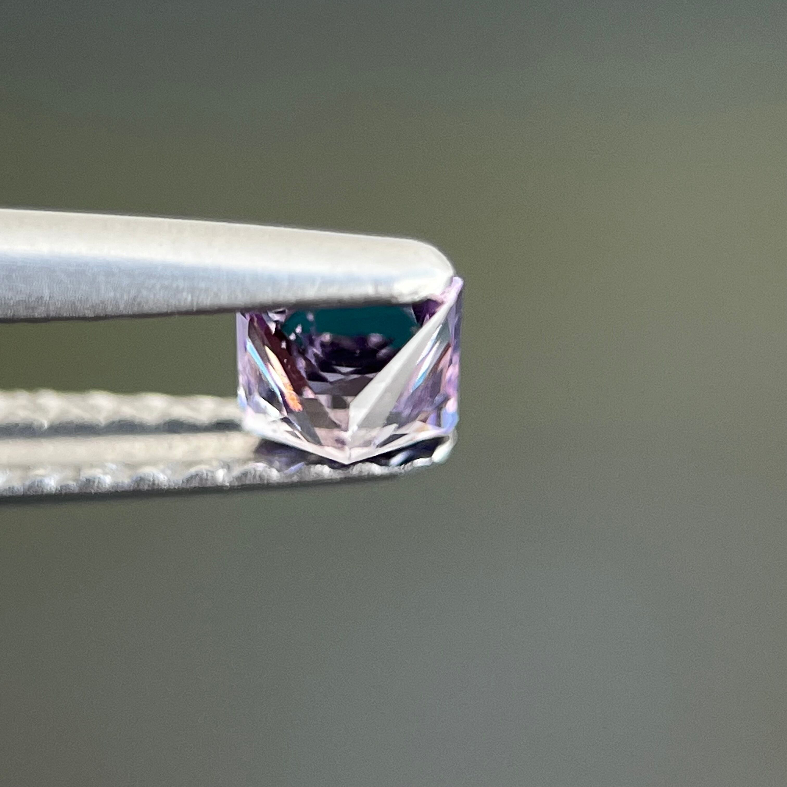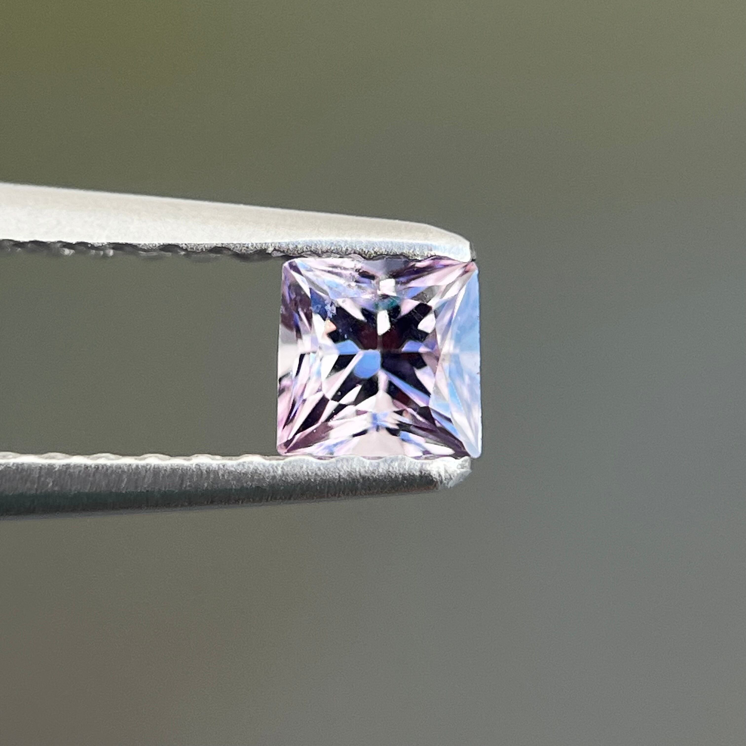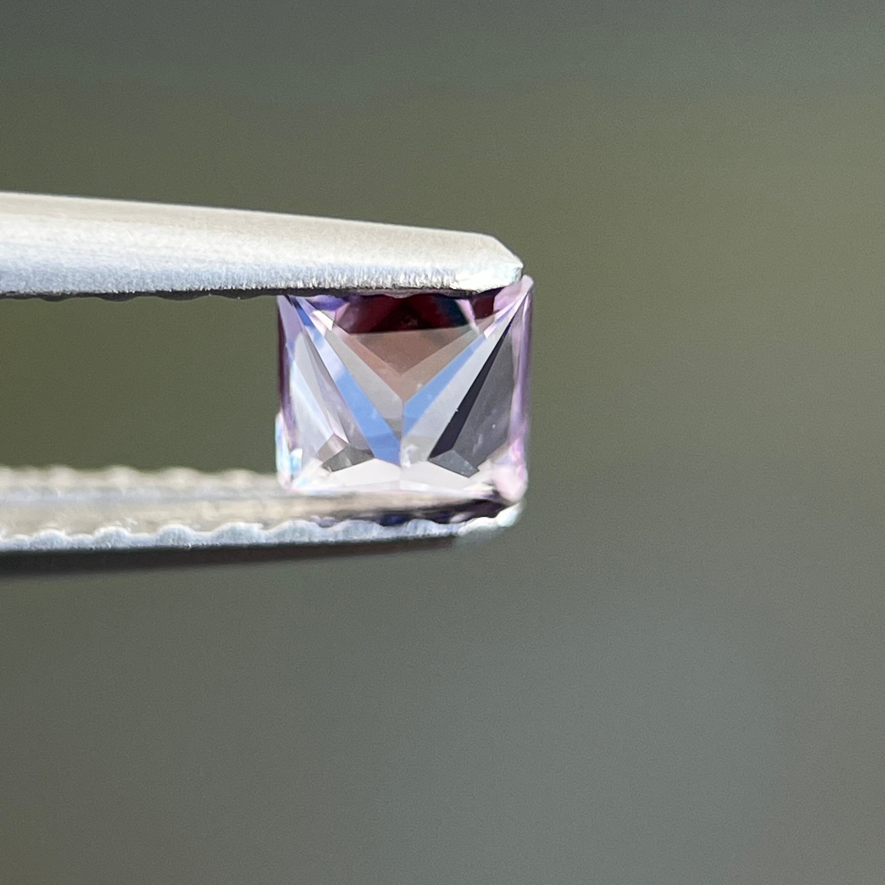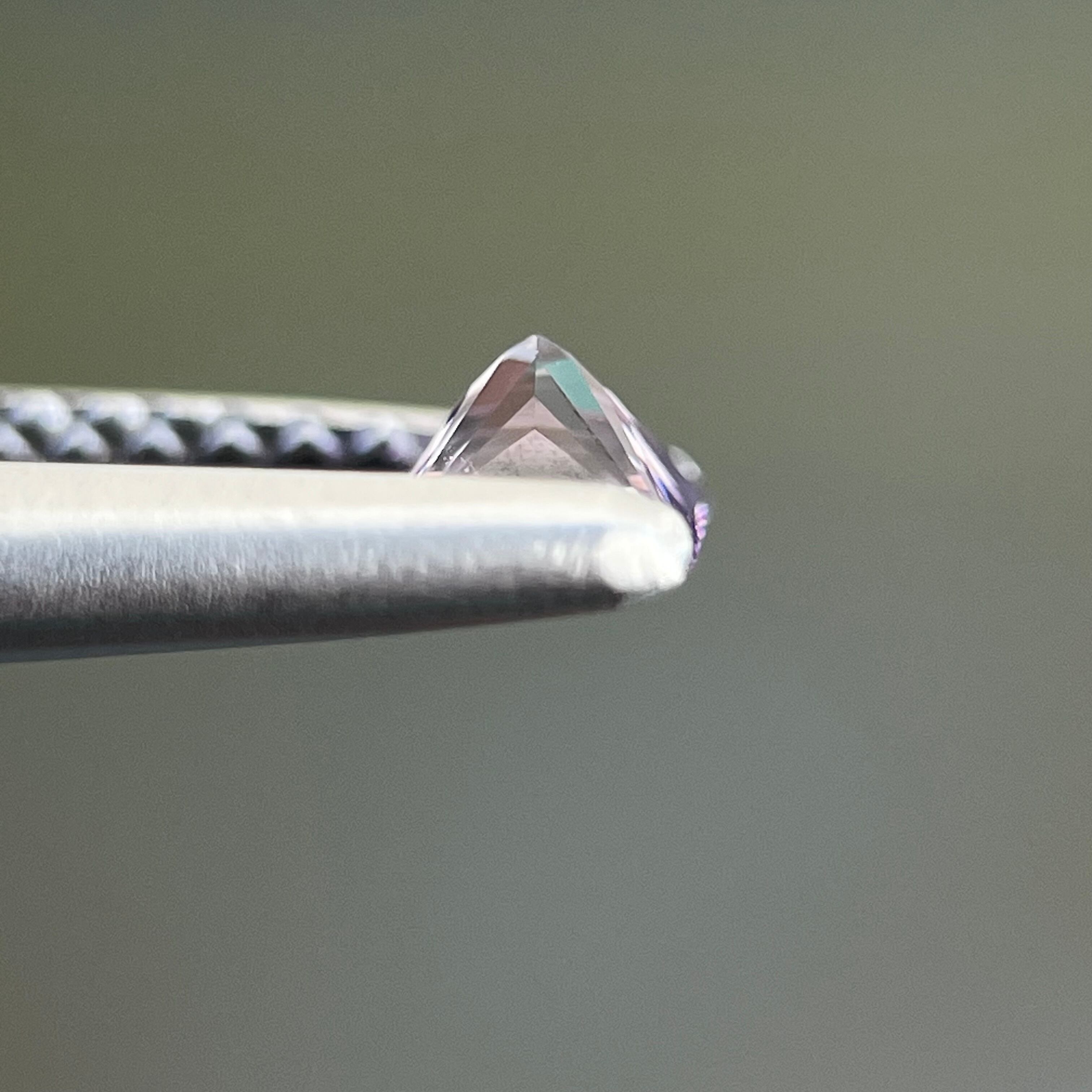 プリンセスカットで、実物肉眼で見るととても綺麗なルースです。iPhone でマクロレンズ使用して室外で撮影した画像です。