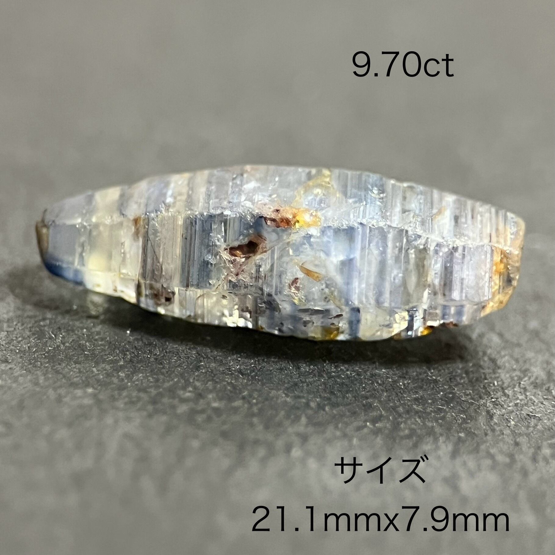 このルース9.87ctのサイズおおよそ長さ21.1mmx7.9mmです。