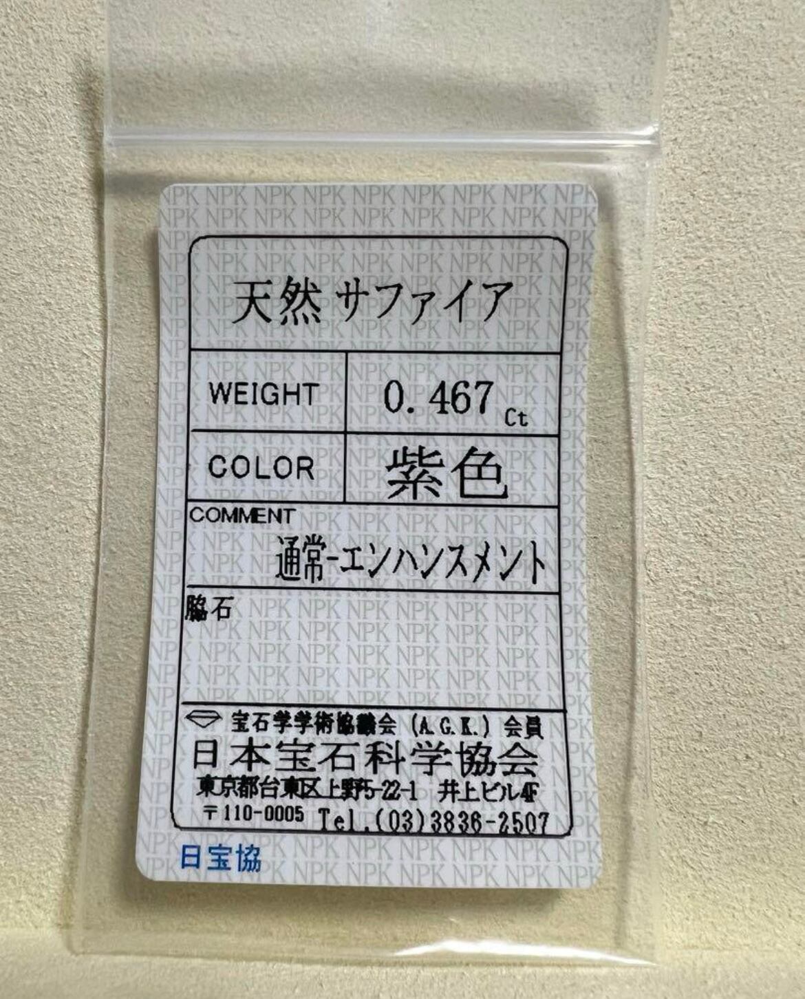 日本宝石科学協会のソーティング証明書を無料で付けます。