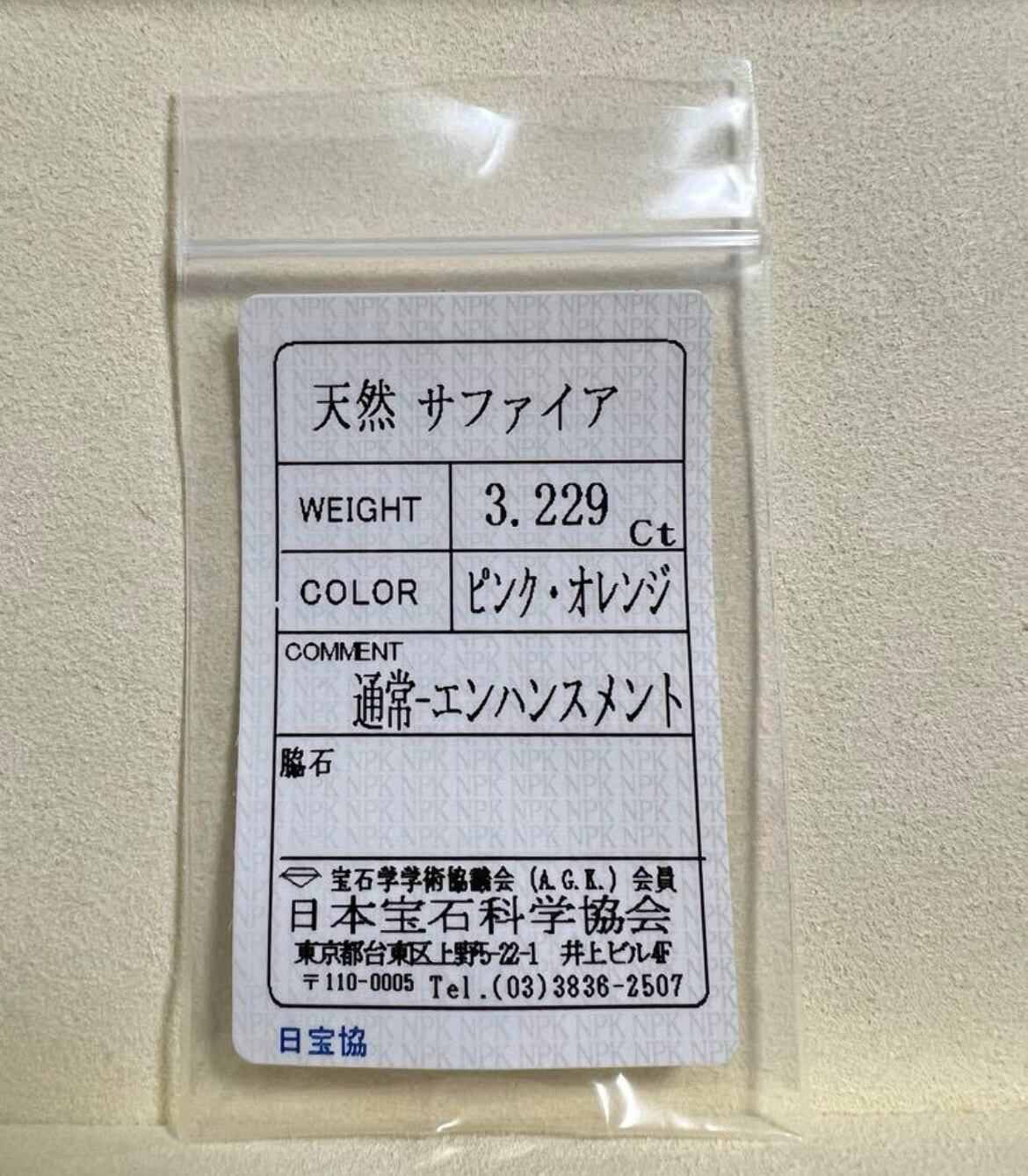 日本宝石科学協会のソーティング証明書無料で付けます。