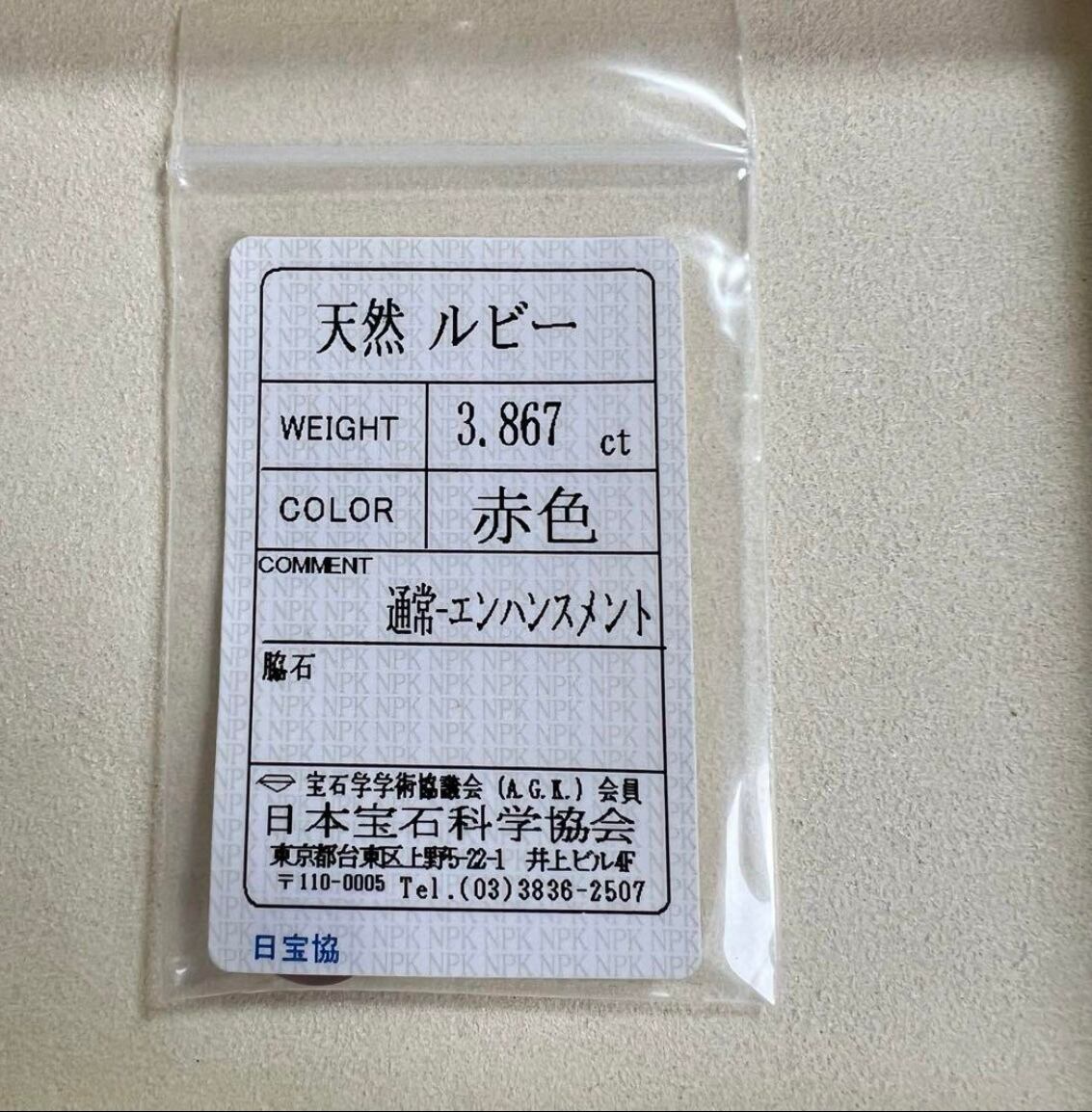 日本宝石科学協会のソーティング証明書を無料で付けます。